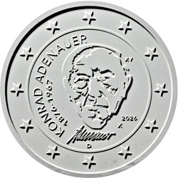Zum 150. Geburtstag des ersten Bundeskanzlers Konrad Adenauer erscheint im Januar 2026 eine 2-Euro-Gedenkmünze im Rahmen der Serie „Einigkeit und Recht und Freiheit“.