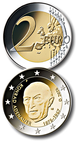 Die 2-Euro-Gedenkmünze zum 150. Geburtstag von Konrad Adenauer wurde von Marianne Dietz aus Berlin gestaltet.